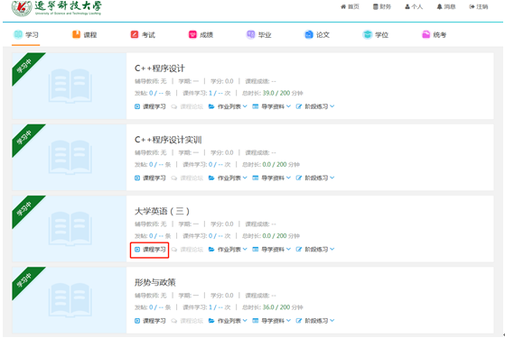 4、選擇視頻課件,進(jìn)行學(xué)習(xí),每科學(xué)習(xí)200分鐘,課件學(xué)習(xí)次數(shù)大于5次即可。