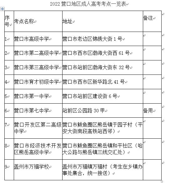 1.在原有營(yíng)口市內(nèi)考區(qū)和鲅魚圈考區(qū)的基礎(chǔ)上,增設(shè)蓋州市考區(qū),設(shè)蓋州市萬(wàn)福學(xué)??键c(diǎn)。