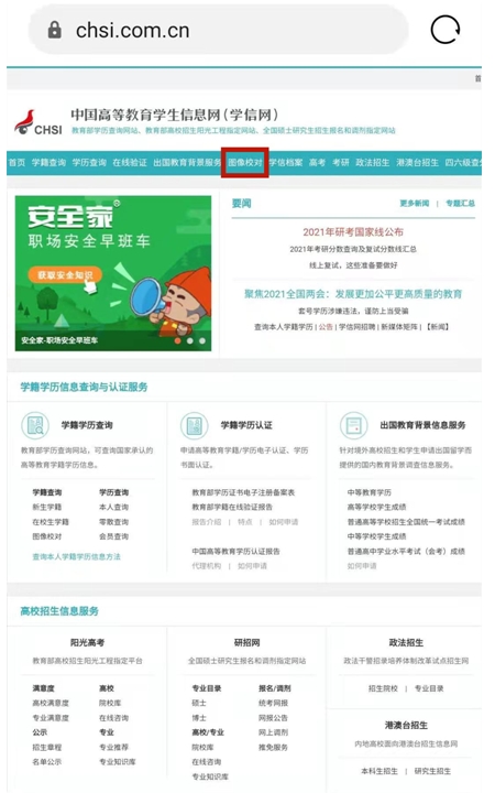 1、打開手機(jī)瀏覽器,登錄中國高等教育學(xué)生信息網(wǎng)(www.chsi.com.cn)