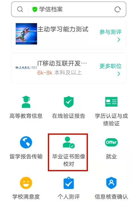 3、進(jìn)入學(xué)信網(wǎng),選擇畢業(yè)證書圖像校對。