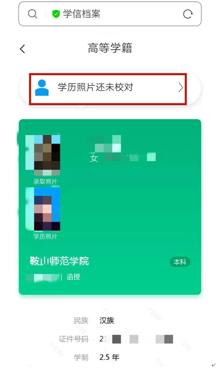 確認(rèn)無誤后,點(diǎn)擊 學(xué)歷照片還未校對。